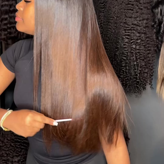Douce comme du beurre , avec des pointes coupées nettes pour un look plus fourni et soigné, cette perruque est conçue pour rester lisse sans nécessiter de lissage quotidien. Elle est donc idéale pour celles qui recherchent une apparence impeccable en toute simplicité.
